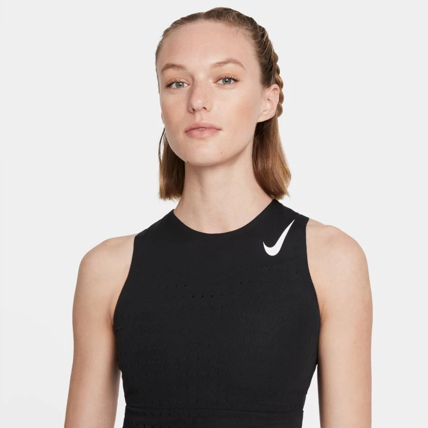 Strive for greatness in the the Nike AeroSwift Singlet. Smooth and stretchy fabric hugs your body to keep distractions at a minimum. It feels light and breathable to help you stay comfortable while you move. This product is made with at least 75% recycled polyester fibers