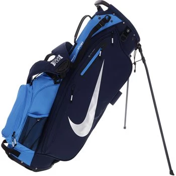The Nike Air Sport GB Stand Bag features Ergonomic Nike Equalflex Max Air dual strap for comfort and ease of use, Insulated pockets that help keep food and beverages cold, a water-resistant, fleece lined pocket that helps keep your valuables secure and protected, and an exterior water bottle pocket for convenience.