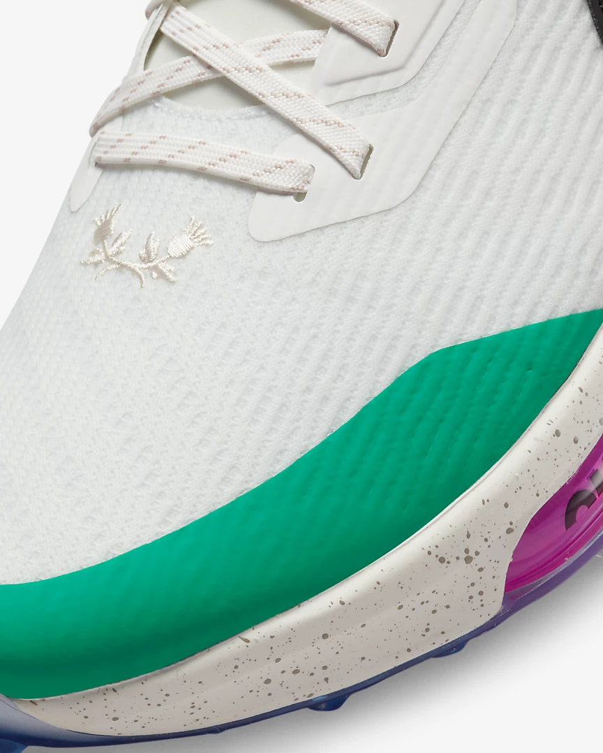 We listened to the feedback you had on the Infinity Tour, refined it and brought it to life on the Nike Air Zoom Infinity Tour NEXT%. We increased the overall volume to give your foot more room. We added 2 large Zoom Air units for even more energy transfer through your swing. And there’s more traction in key areas to help reduce slipping. The result is an incredibly responsive, comfortable shoe. This version nods to a historic course in Scotland, which naturally embeds tradition with the unpredictable nature of coastal links.