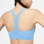 The mesh elastic band helps keep sweat from pooling up at the bottom of your bra. Nike logos add structure to prevent it from rolling up mid-workout.