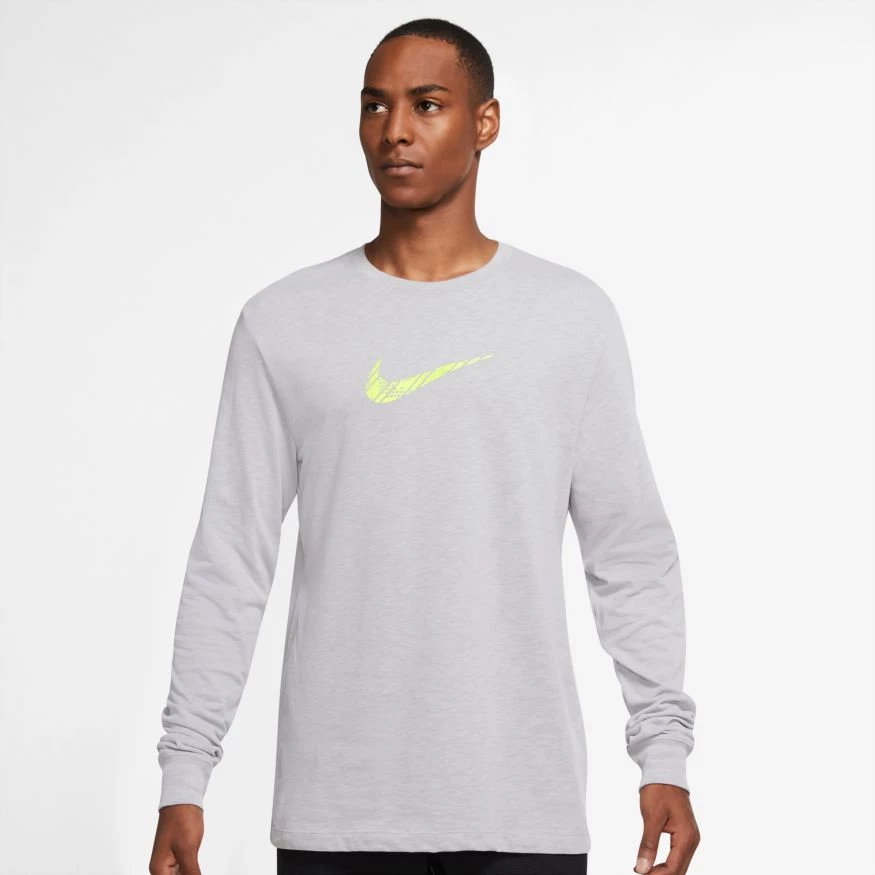 The Nike Dri-FIT T-Shirt is made with soft fabric that wicks sweat to help keep you comfortable and dry from your first stretch through your last set. Slub texture has a broken-in look and feel.