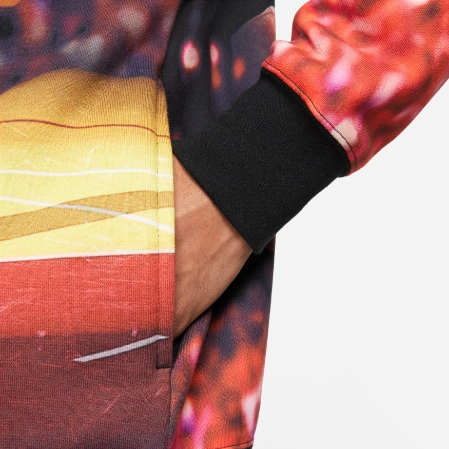 Suit up in cozy, wintry warmth with an eye-catching graphic. The Jordan Jumpman Pullover Hoodie is made from heavyweight fabric with snug, stretchy cuffs and an easy, relaxed fit. An allover print pops with colorful energy in celebration of MJ’s greatness.