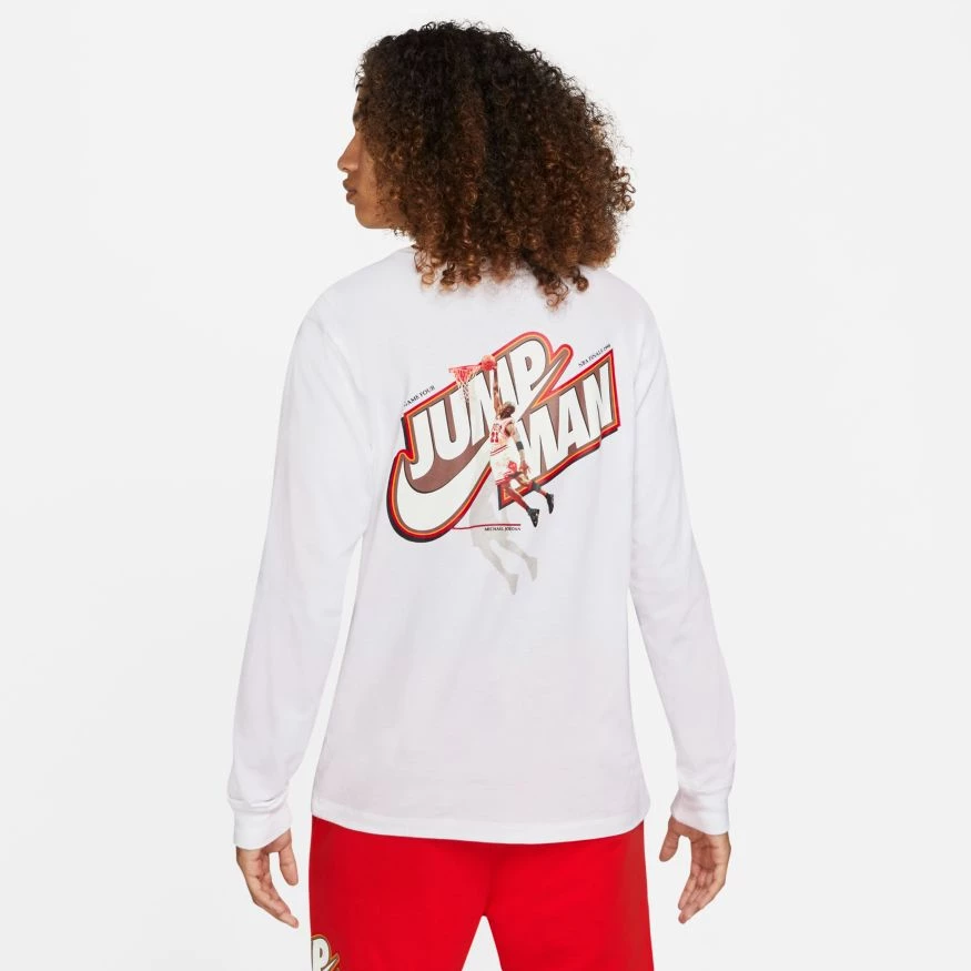 This Jordan Jumpman T-Shirt is made from soft, comfortable cotton with an easy, relaxed fit. Graphics front and back combine printed lettering with a photo-realistic digital print of Michael Jordan from Game 4 of the 1998 championship.