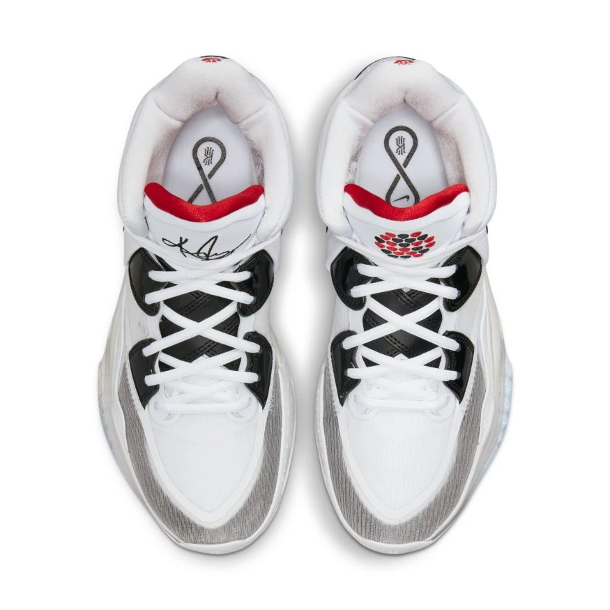 Kyrie likes his shoes to feel tight and custom fitted like a boxing glove. Dynamic internal bands poke through the upper, and the laces feed through them. Tightening the laces pulls down on the bands to create a super snug, comfortable and connected fit.