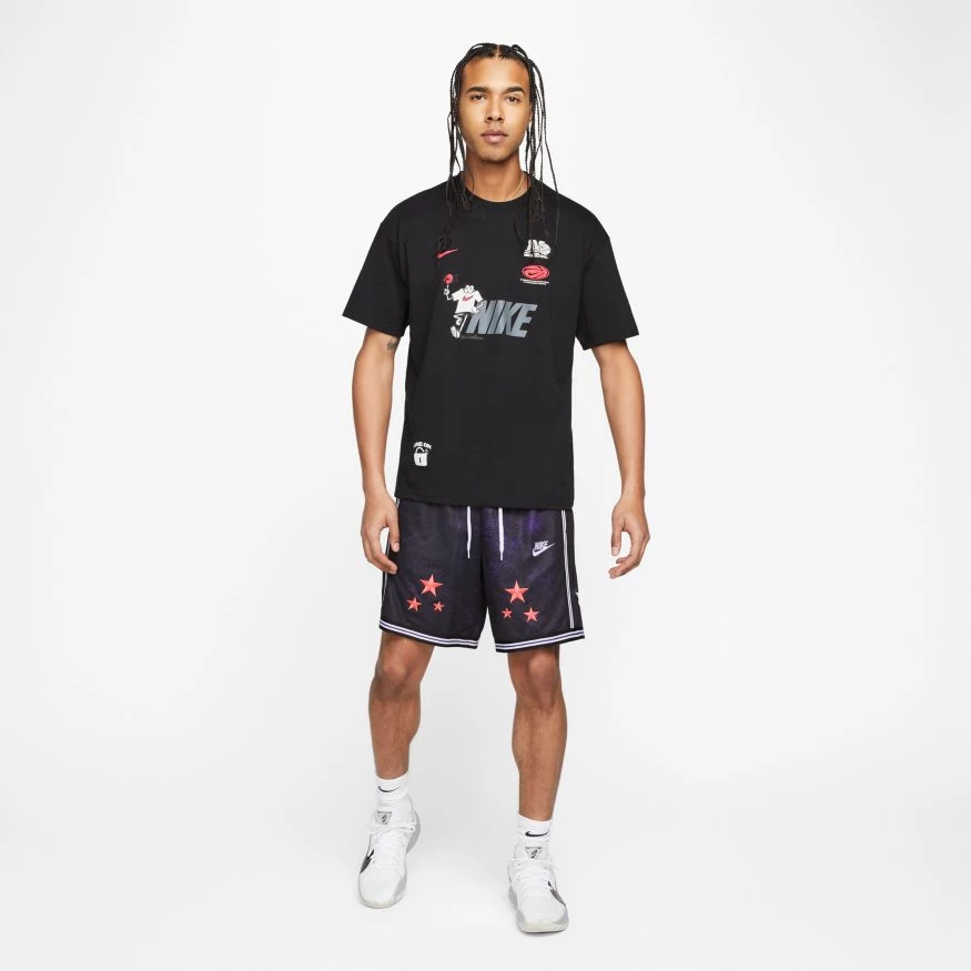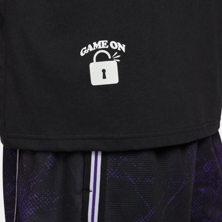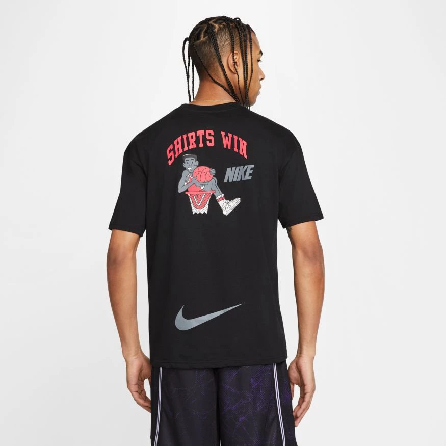 Welcome to the backyard training club, where buckets are the rule and fun is guaranteed. This versatile t-shirt from Nike Basketball is made on soft, comfortable cotton with a loose, roomy fit.