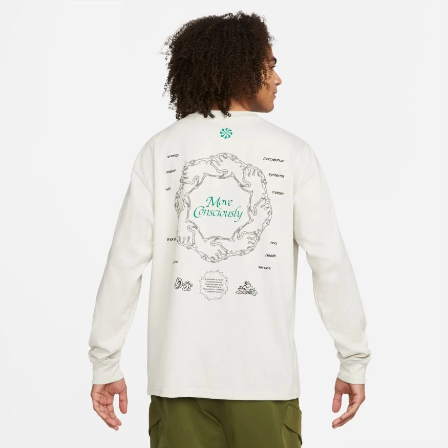 The Nike Sportswear Long-Sleeve T-Shirt is made with heavyweight cotton and our Max 90 design for a sturdy feel and roomy fit. The printed graphic highlights the power of teamwork and unity in and out of the field of sport. This product is made with at least 75% organic cotton fibers.