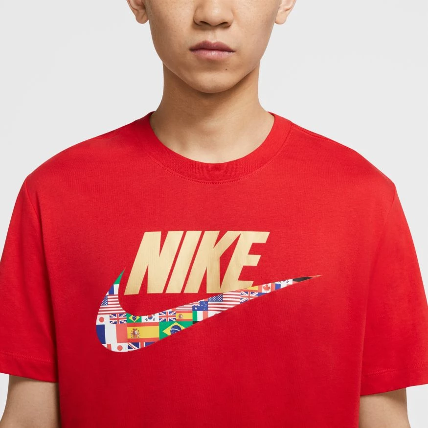 The Nike Sportswear T-Shirt highlights how sport unites athletes around the world with a print that puts a global spin on a classic logo.