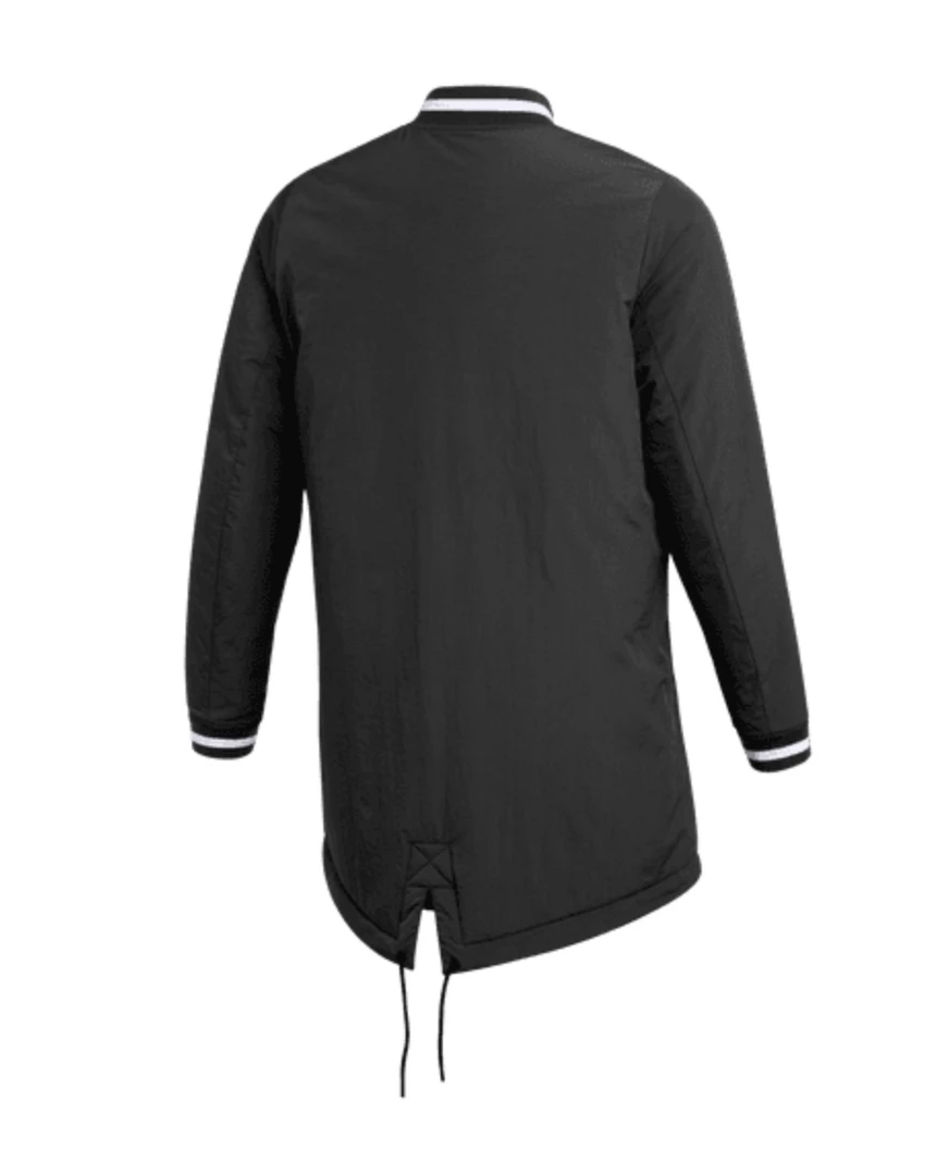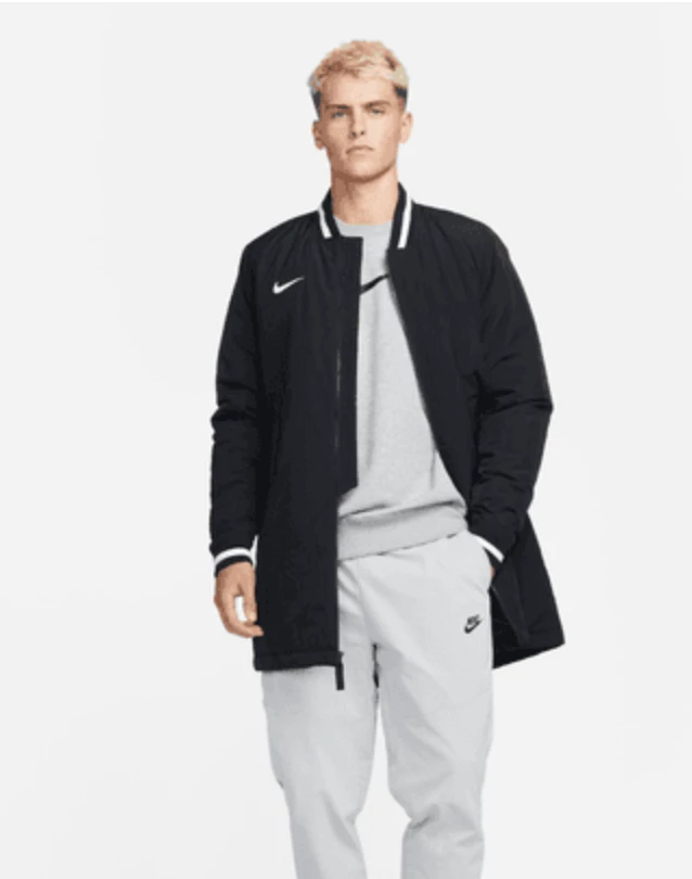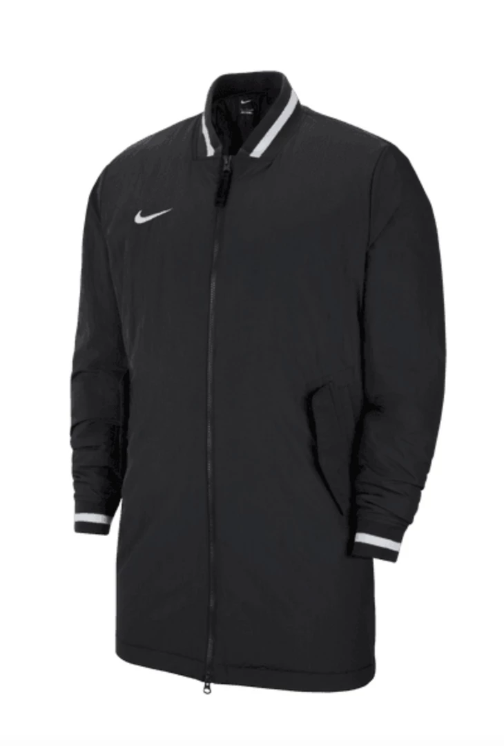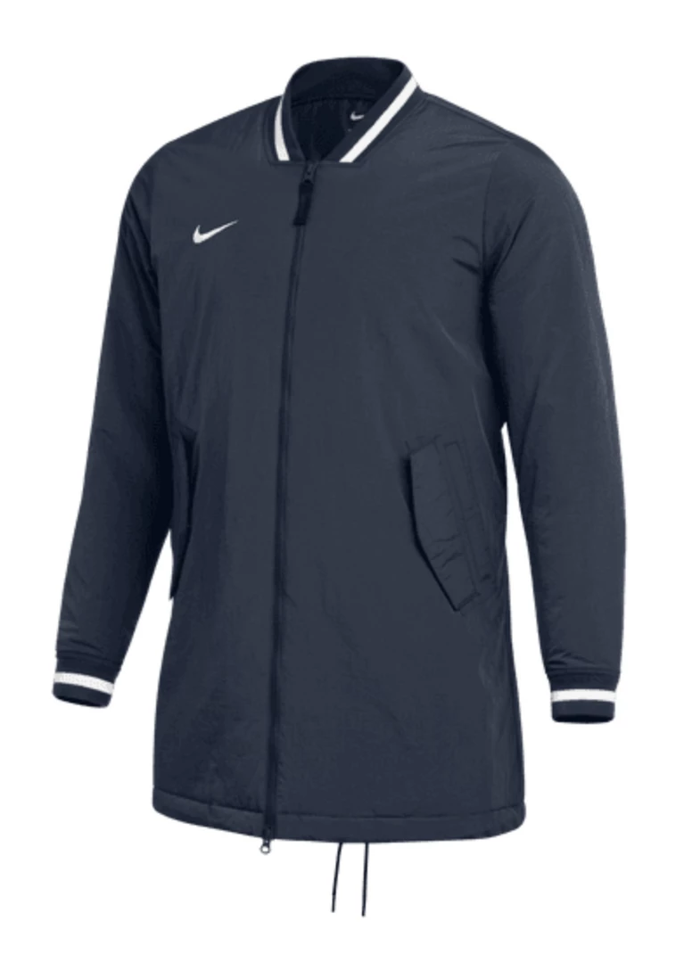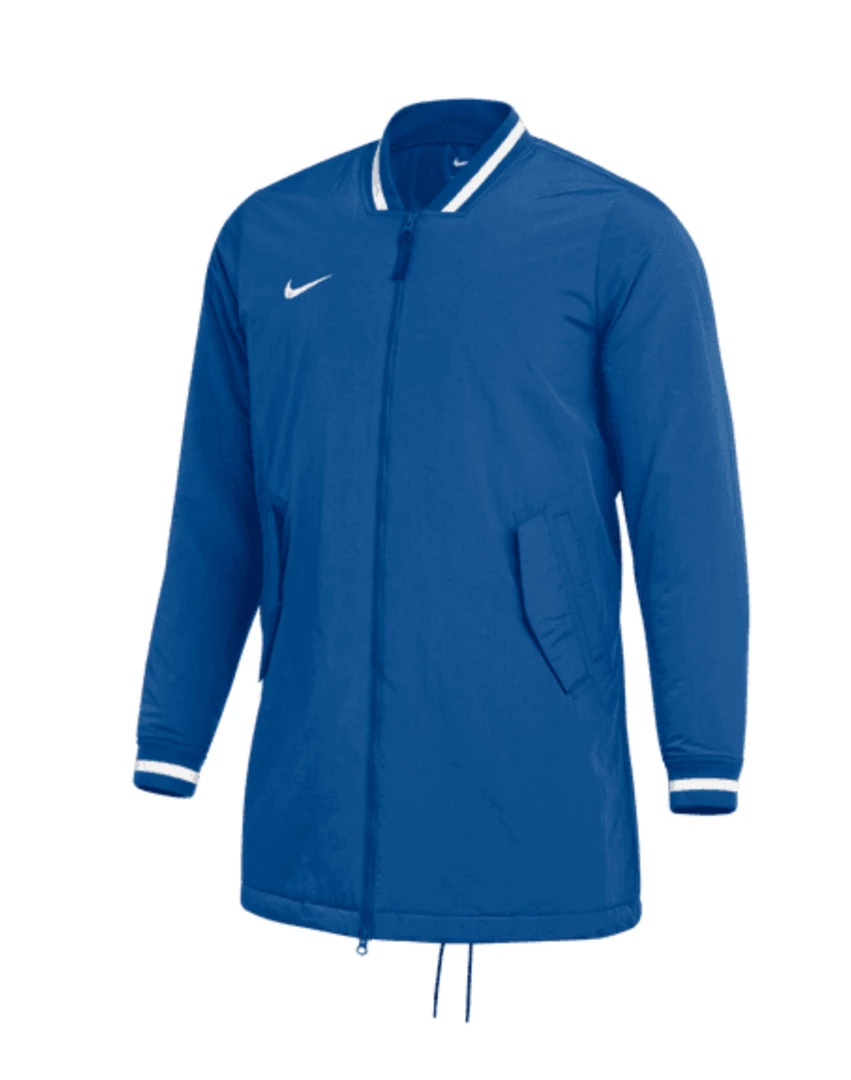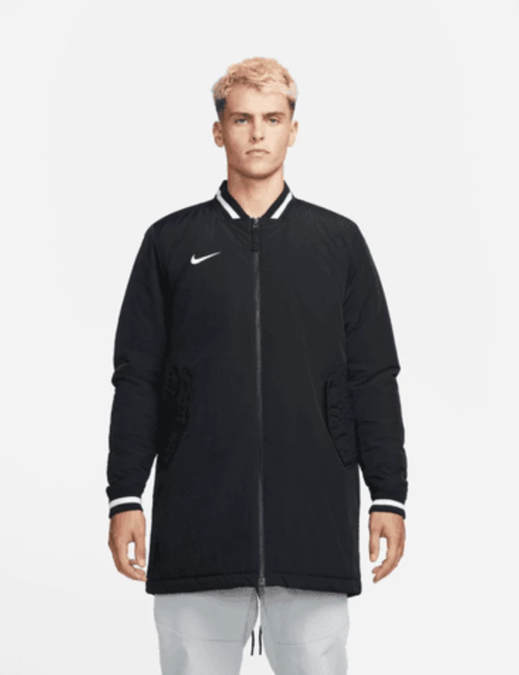 Inspired by and made for the pros, the Nike Dugout Jacket draws on classic letterman vibes with a ribbed collar and cuffs and relies on durable, elevated, water-repellent fabric to help keep you comfortable even in less-than-ideal weather conditions. A mid-thigh length offers even more coverage to help you stay warm, while a full-length zipper lets you adjust if the sun comes out. This product is made with at least 50% recycled polyester and recycled nylon fibers.